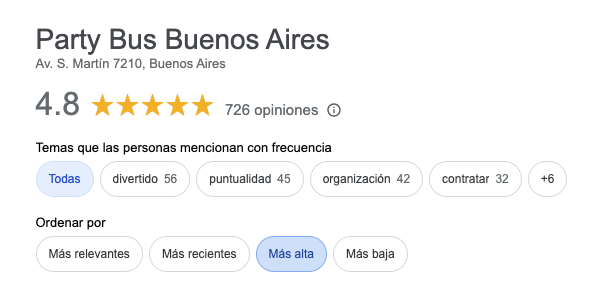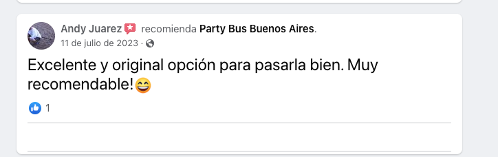 GIr a ver todos los reviews a googleVer los comentarios en FacebookOOGLEmas de 722 reviewsDeslizá para conocer opiniones mas de 765 reviews4,9/5 Deslizá para conocer opiniones4,8 / 5 opinionesNuestra organizadora de eventos, GUIONARa tu fiesta segun las multiples preferencias que iras eligiendo durante la creacion de tu evento.para ello Fusionamos una discoteca de lujo con un autobus, para realizar graduaciones universitarias.El party bus sera el punto de reunion para familiares y amigos, en la puerta de la facultad, mientras se espera la salida del egresado. para luego subirlo al bus y comenzar la fiesta!LLEGADO EL DIA DEL MISMO. NUESTRO DJ PENETRARA EN TU GRUPO SOCIAL PARA PONER A TODOS A BAILAR, JODER Y CANTAR.Sin cargoCENA para todos enshot de bienvenidaEn baresingreso freeEN bolichesLOCALESSUGERIDOSSincargo presupuestar X music_notewww.partybus.com.ar